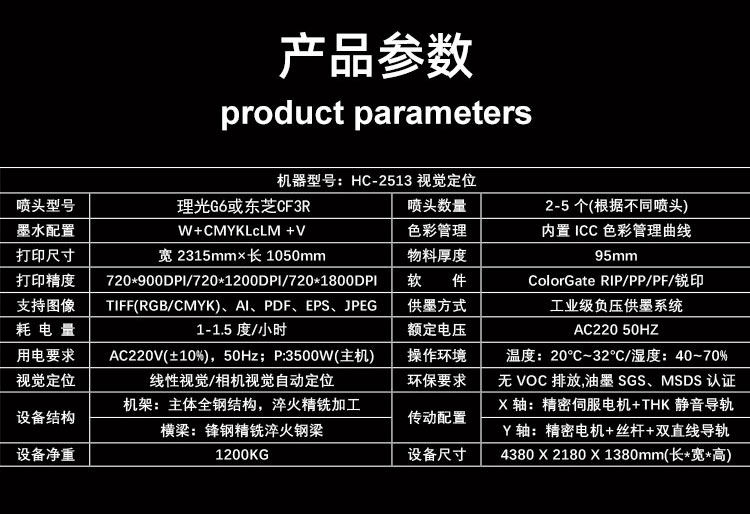 設備型号:HC-2513高落差視覺定位UV打印機